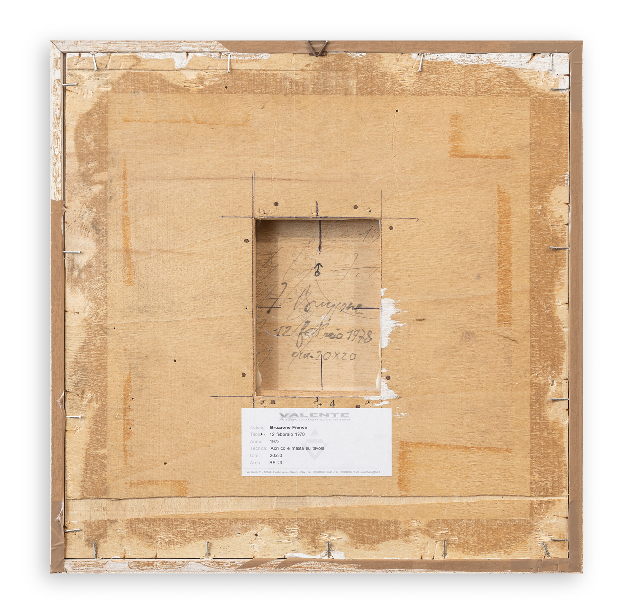 Etichetta della Galleria Valente Arte Contemporanea (SV) al retro