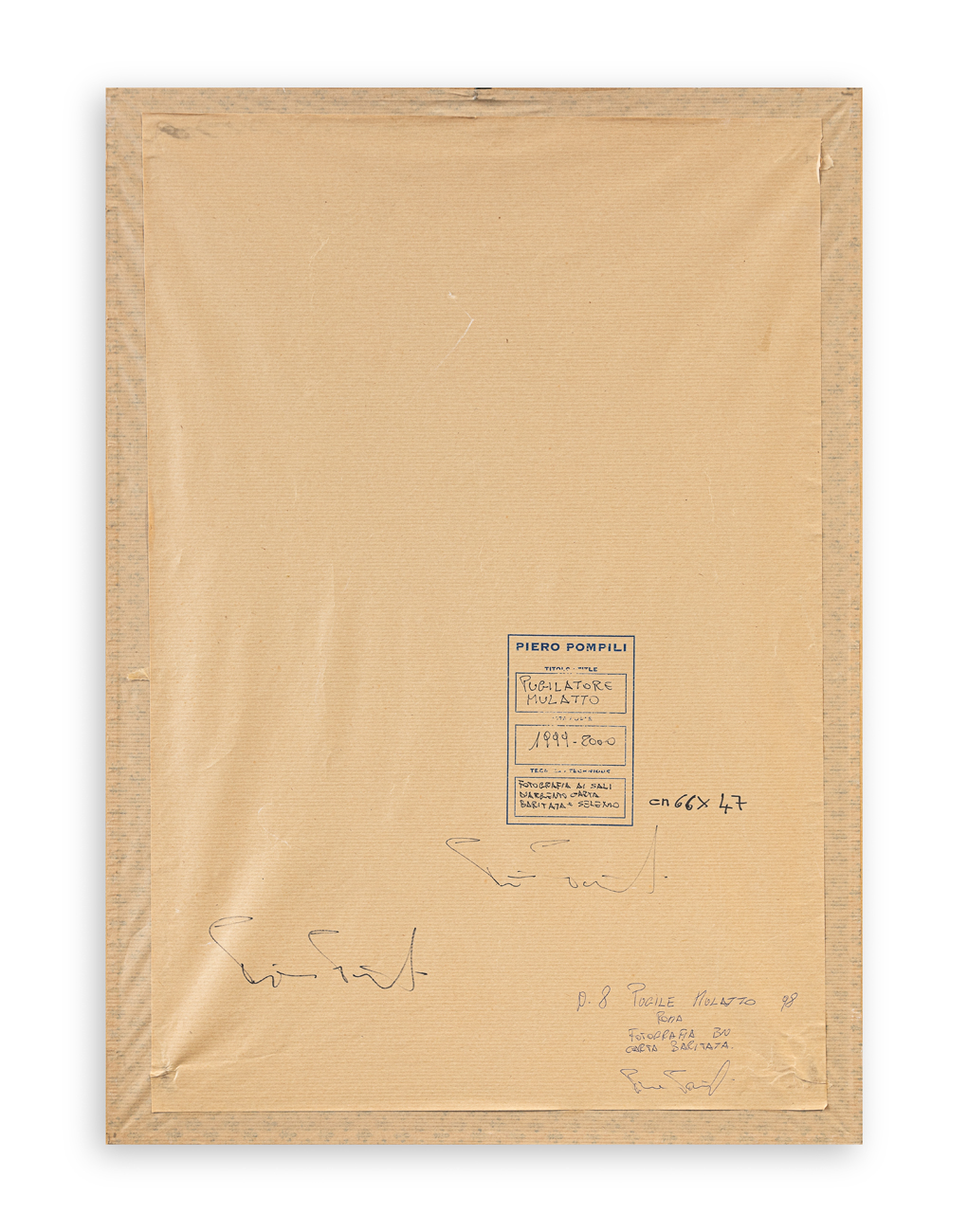 Timbro dell'Artista recante firma e caratteristiche tecniche dell'opera al retro del cartoncino protettivo