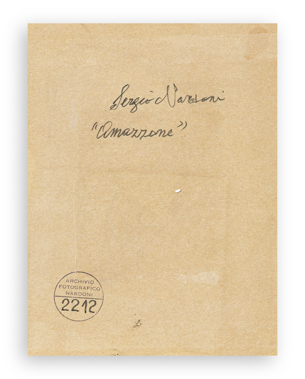 Firma, titolo e timbro dell'Archivio Fotografico Sergio Nardoni al retro