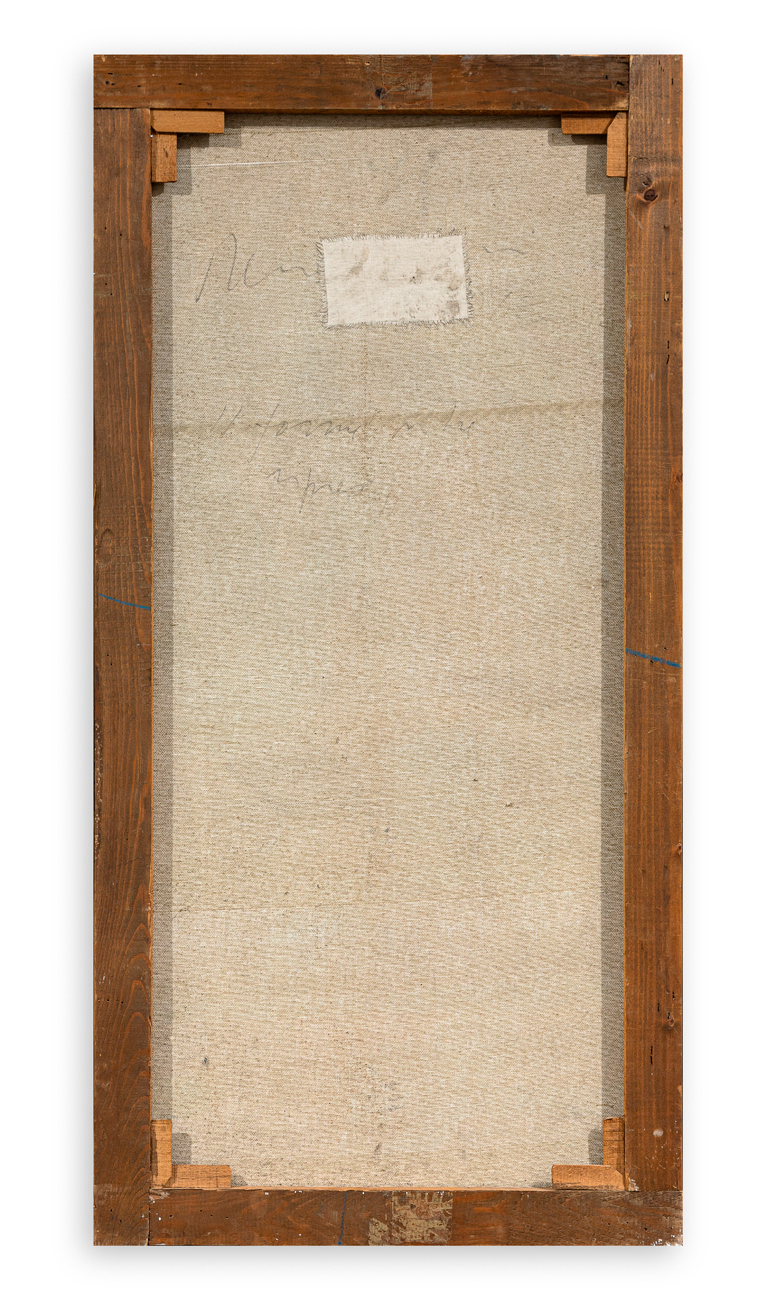 Firma e titolo al retro della tela centrale