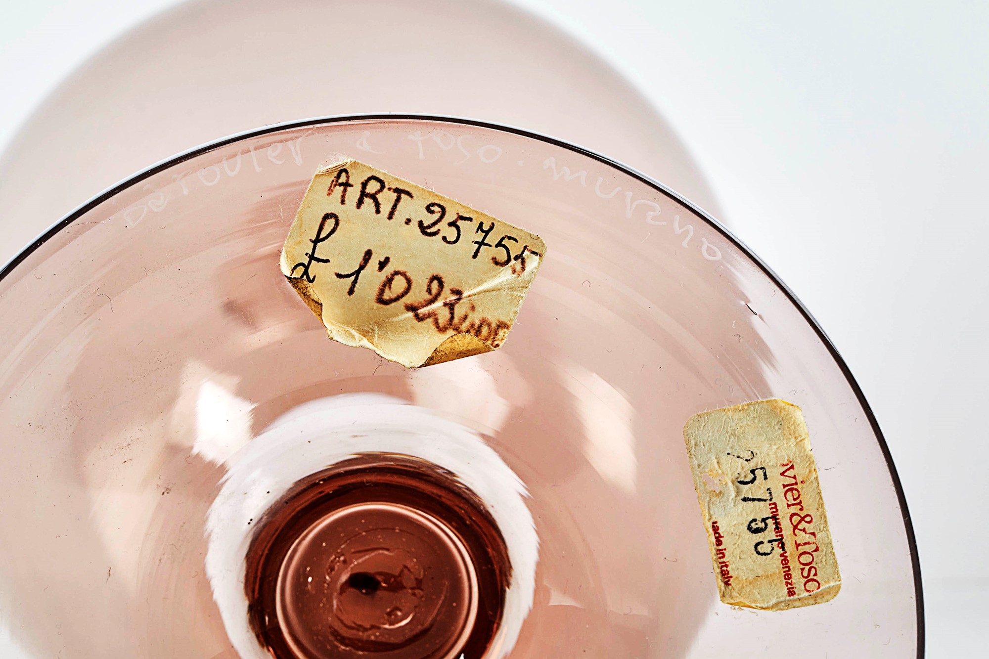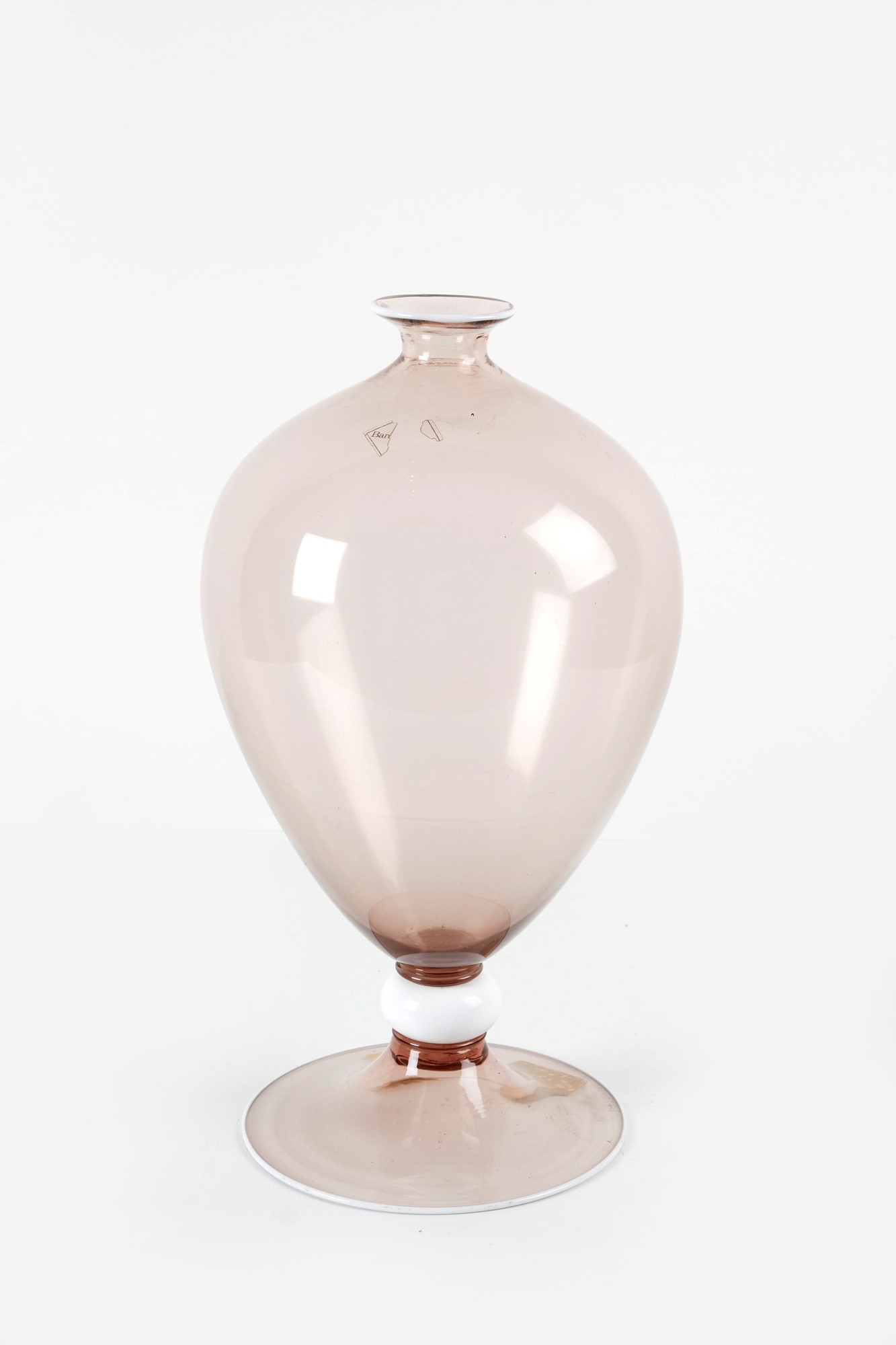 BAROVIER E TOSO Vaso "Veronese" in vetro color moka trasparente. Prod. Barovier e Toso, Murano, Italia, 1980. Cm 29x13ø. Sotto la base reca firma incisa ed etichetta Barovier e Toso.