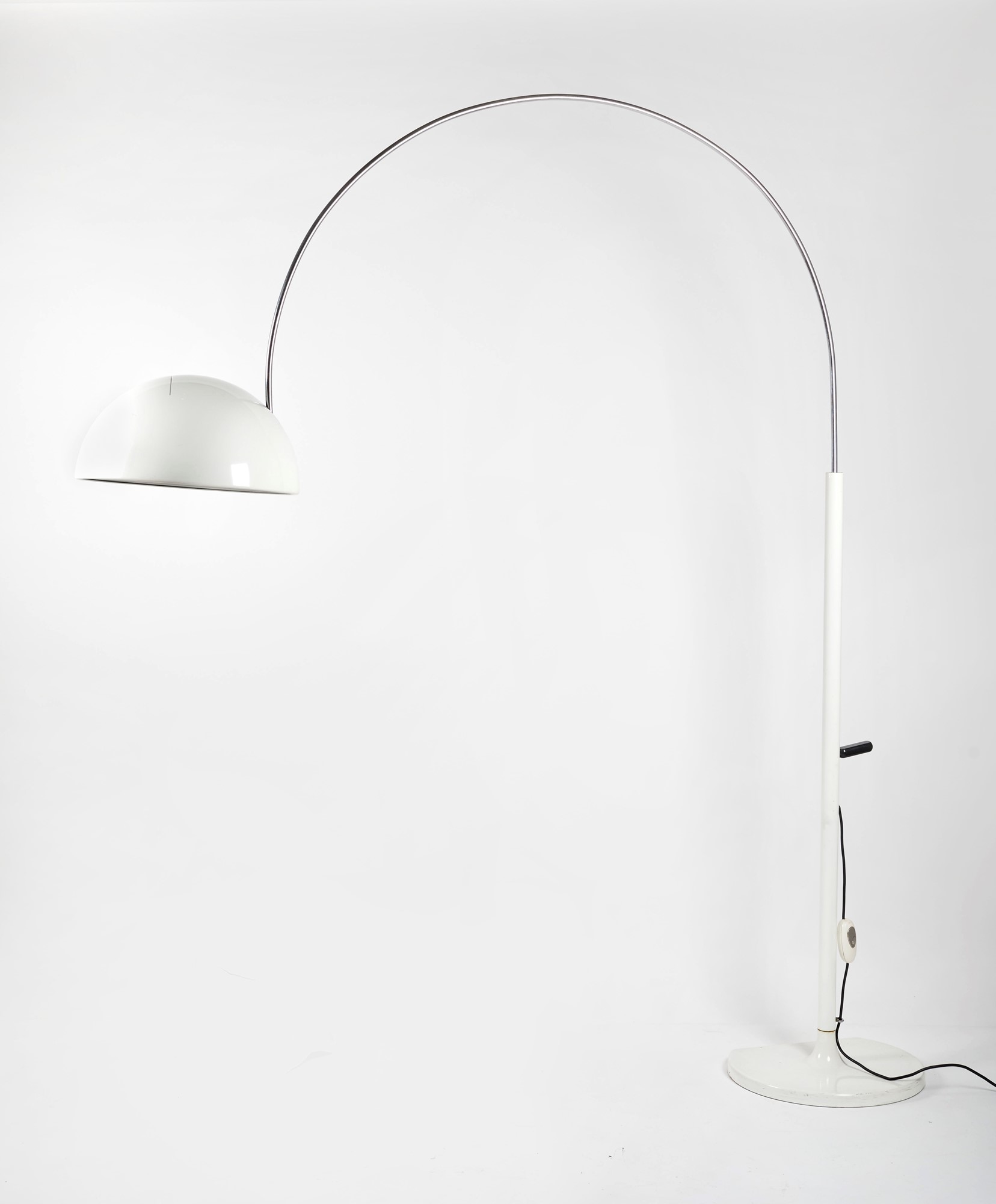 JOE COLOMBO (Milano 1930 - Milano 1971) Lampada da terra ad arco modello 'Coupé'. In metallo laccato e accaio cromato. Prod. O-Luce, 1967. Cm (h max) 230x40ø.