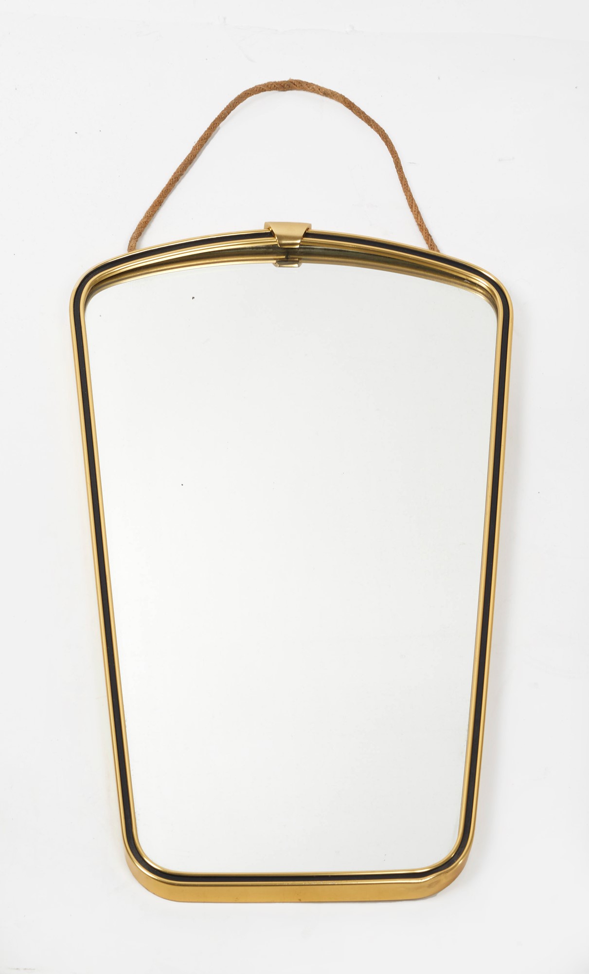 Specchio da parete in ottone. Prod. Italia, anni '50. Cm 42x28x20.
