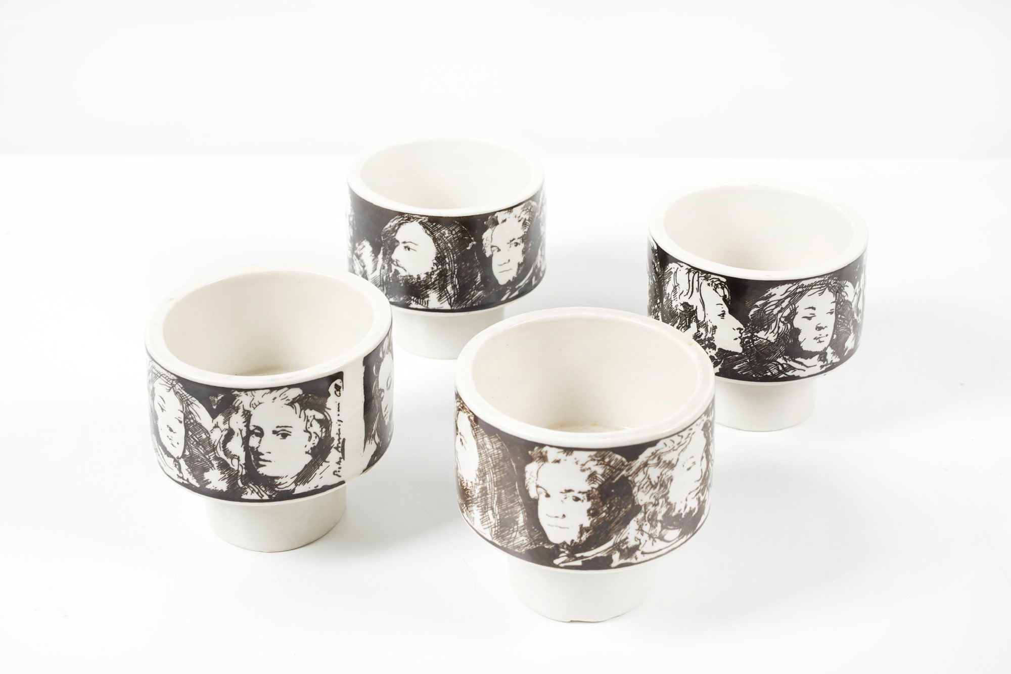 PIETRO ANNIGONI (Milano 1910 - Firenze 1988) Lotto composto da 4 ciotole. Anni '60. Cm 8,5x9,5. Prod. Porcellane Eva Sud, Italia. Recano marchio Porcellane Eva Sud e sigla del pittore.