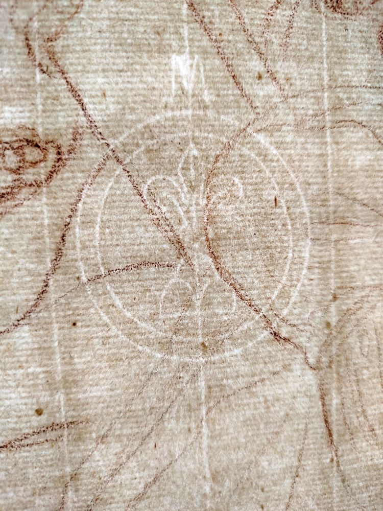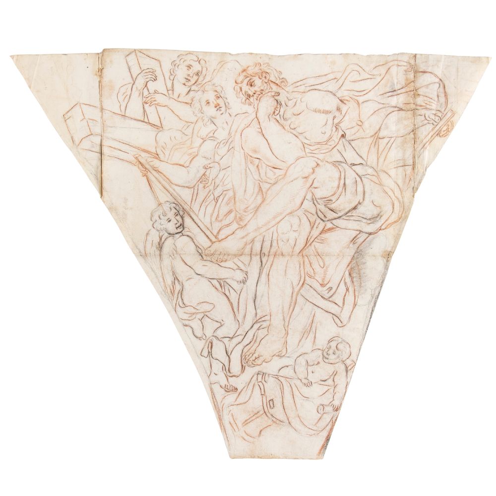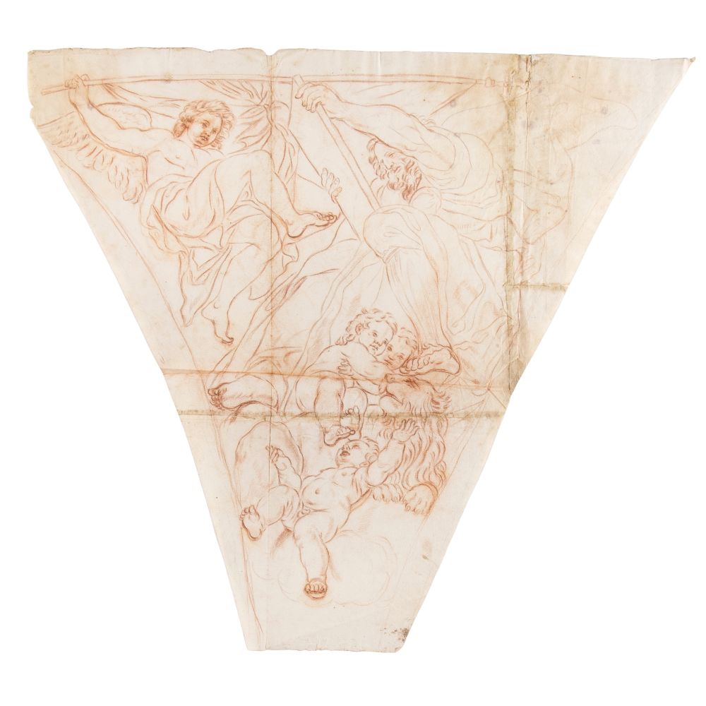Sanguigna e matita su carta vergata con filigrana (giglio su tre monti nel doppio cerchio sormontato dalla lettera M – simile a Heawood 1623 – Roma, seconda metà del XVII secolo), 695 × 770 mm ca. e 700 × 775 mm ca.