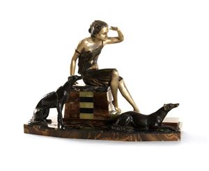 SCULTURA Scultura decò in marmo e antimonio, Francia anni '30 H 44 60x22 cm...
