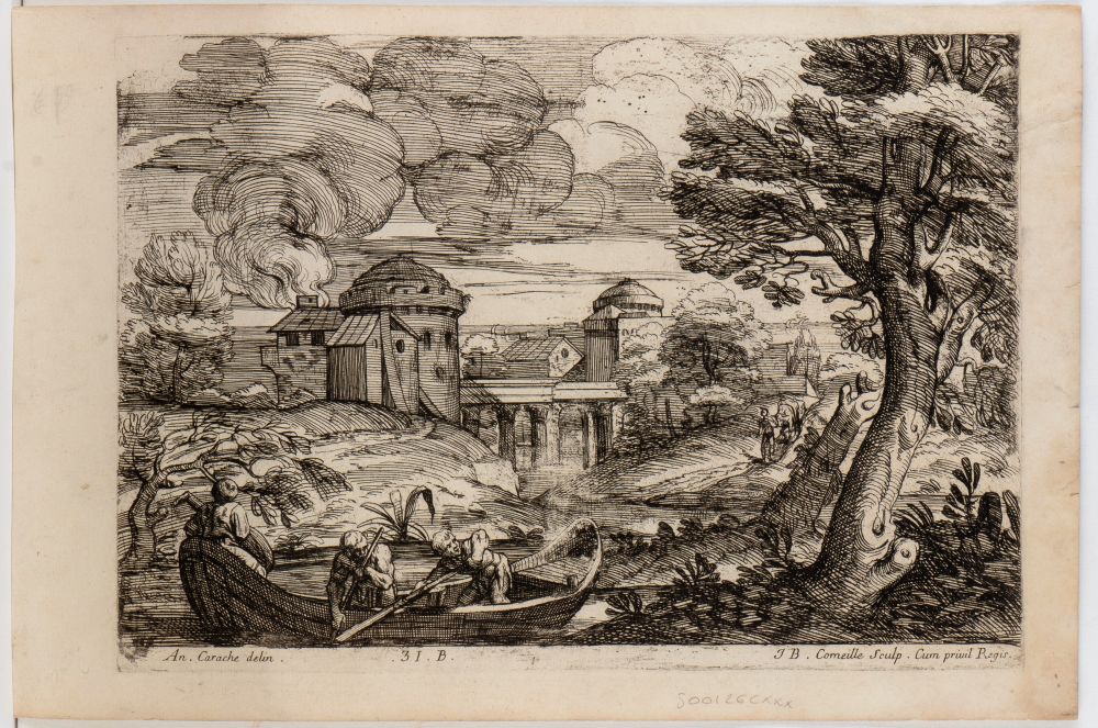 Paesaggio fluviale | Arion salvato da un delfino, da Annibale Carracci,