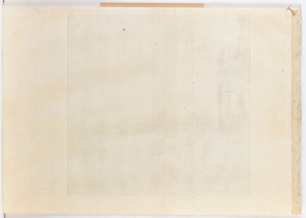 Splendida impressione ricca di contrasti, stampata su una porzione di carta vergata con visibile contromarca (lettere AS). Esemplare con grandi margini oltre alla battuta della lastra. In perfetto stato di conservazione, salvo dei residui di nastro cartacei al verso lungo il bordo sinistro e il bordo superiore e un punto con assottigliamento della carta lungo il bordo superiore.
