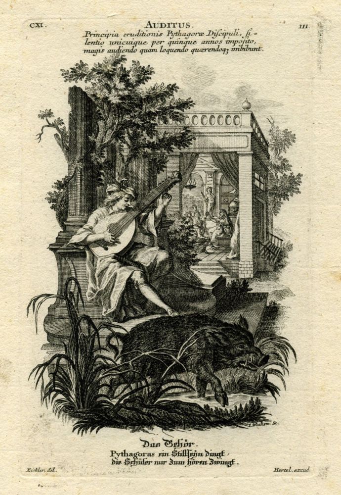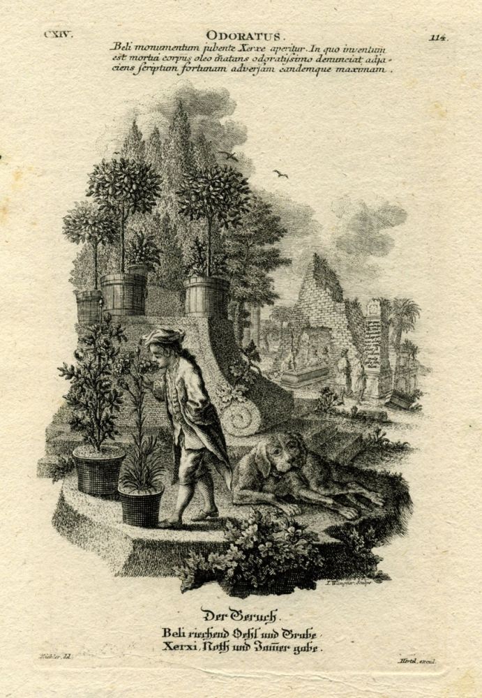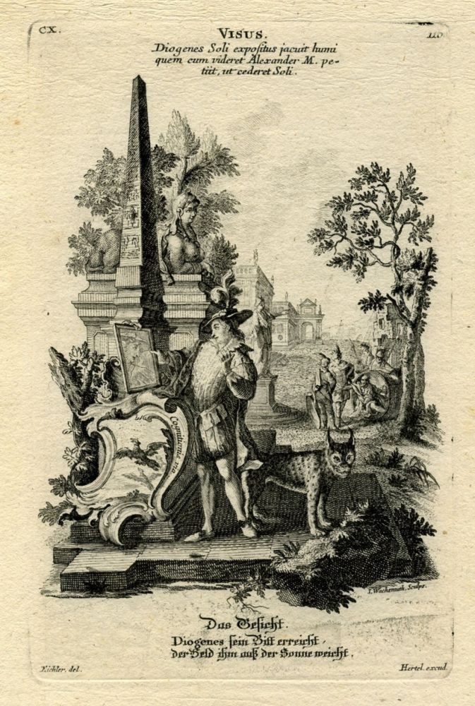 Lotto di cinque incisioni tratta da una vasta serie "Historiae et Allegoriae" da "Iconologia" edita ad Ausburg da Jean Georg Hertel intorno al 1750.