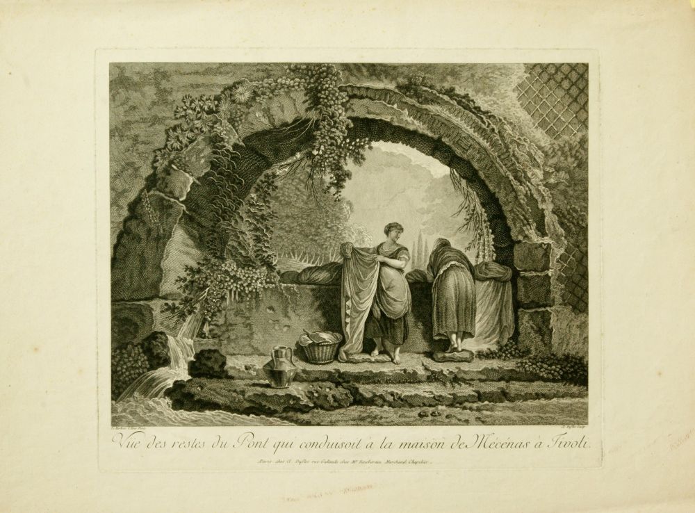 Veduta di una cascata sulle rive del Tevere vicino a Roma | Veduta dei resti del ponte che conduceva alla casa di Mecenate a Tivoli,