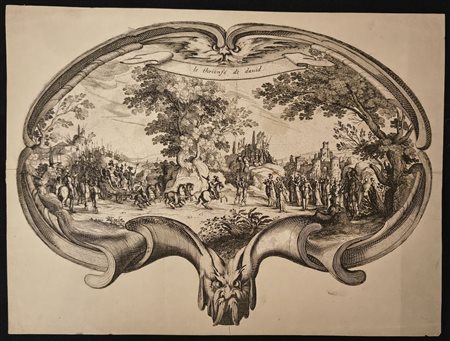 Acquaforte e bulino, 237 x 302 mm. Cornice dal disegno di Callot. IFF 1.
