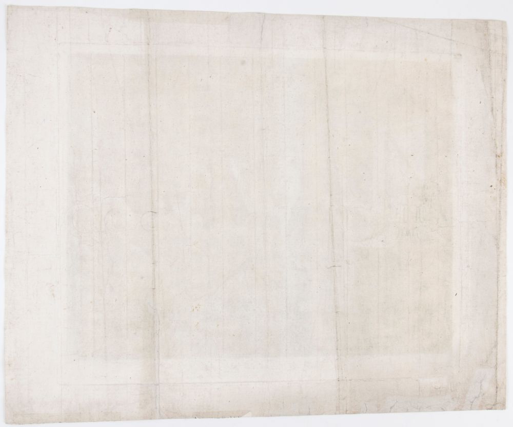 Molto bella impressione stampa su carta vergata con filigrana (tre lune) e contromarca (aquila). Grandi margini preservati. Foglio con tracce di pieghe verticali e dei restauri lungo il brodo inferiore, ma nel complesso in stato di conservazione molto buono.