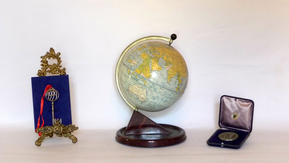 LOTTO DI CURIOSITÀ tra cui un piccolo mappamondo in metallo (4)