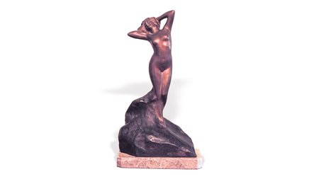 VINCENZO AURISICCHIO (1855-1926) Nudo femminile scultura in bronzo patinato, firmata, su base in marmo esclusa la base h cm 42x21x12 FEMALE NUDE, BRONZE