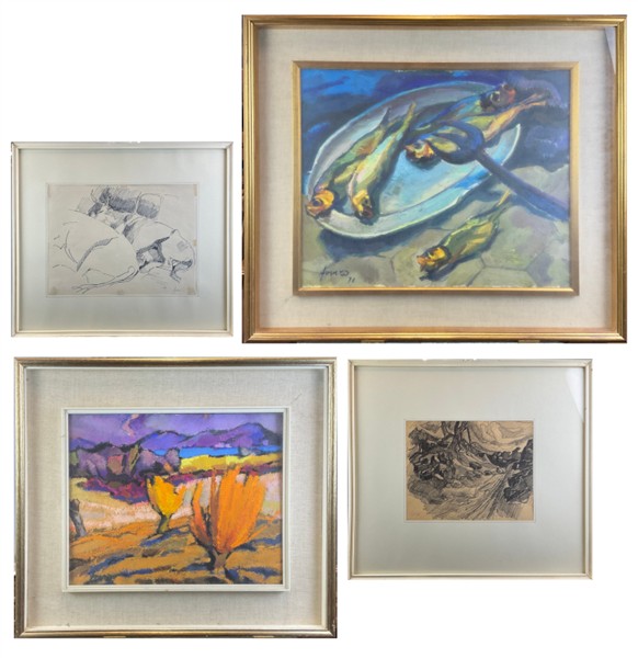 Lotto composto da un olio su tela, uno su cartone e due tecniche miste su carta, di soggetto e misure diverse