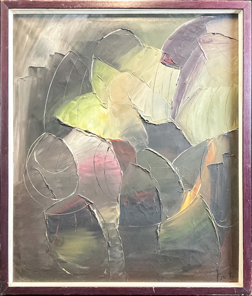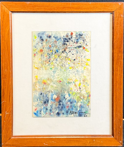 Lotto composto da tre tecniche miste su carta di soggetto astratto, due firmate Marinoni una firmata Keller, misure diverse (misura max cm 31x20) tutte firmate e datate 1960 e 1958 in basso unite ad un olio su tela firmato Bertrand (cm 60x50) firmato in basso a destra e al retro