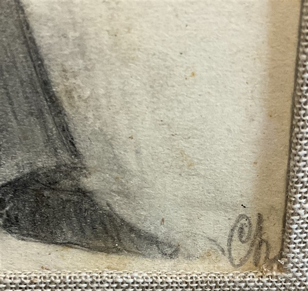 Ignoto "Caricatura" matita su carta cm 15,5x10 siglata in basso a destra; Iscri