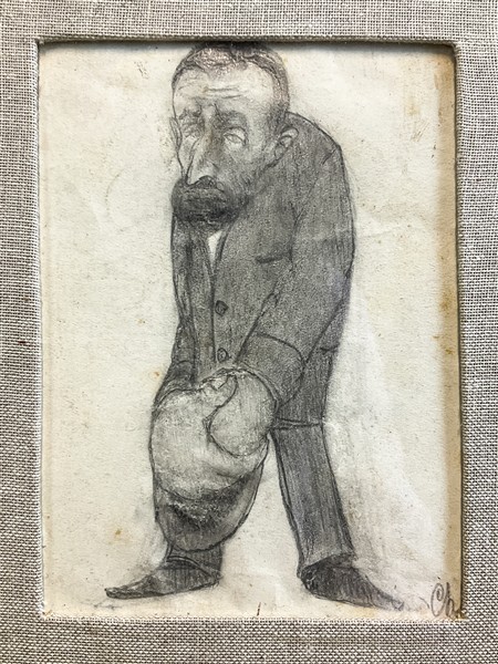 siglata in basso a destra; Iscritta al retro da Gabriele Mucchi "Potrebbe essere una caricatura dello scultore Leonardo Bistolfi". In cornice (difetti)