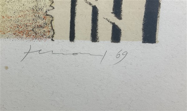 Gianfranco Ferroni "Andare via" 1969 litografia a colori cm 48,5x48,5 firmata, d