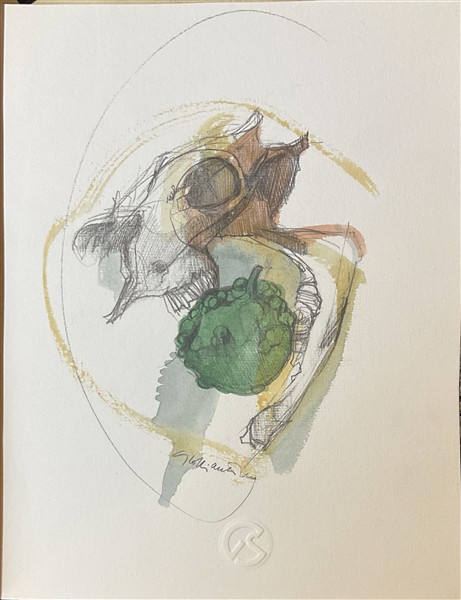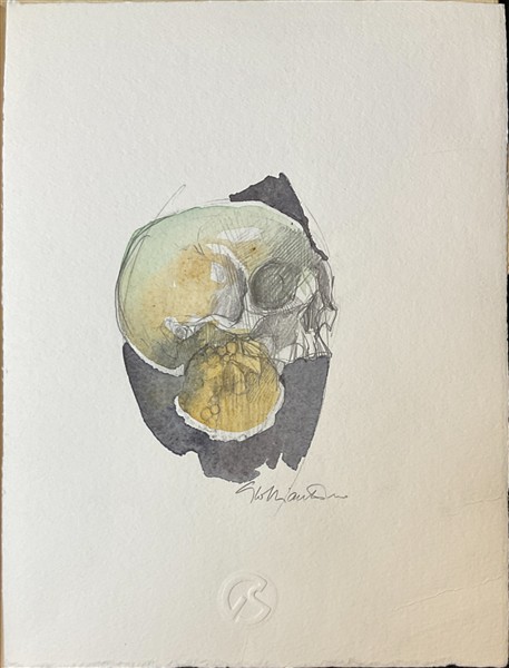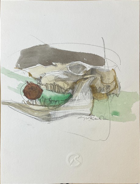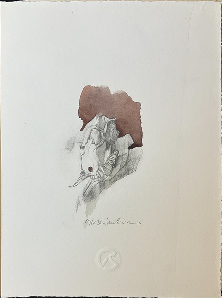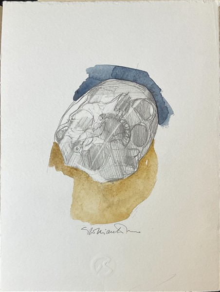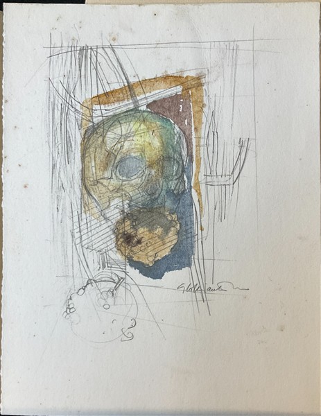 Lotto composto da nove tecniche miste su carta raffiguranti teschi e bucrani