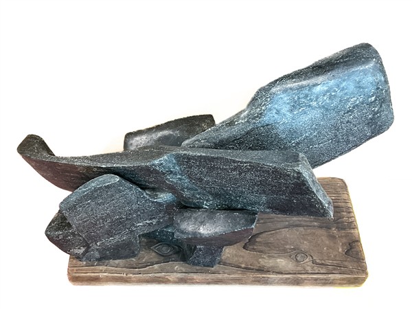 Giancarlo Sangregorio "Zattera della Medusa" 1964 scultura in diorite e legno cm