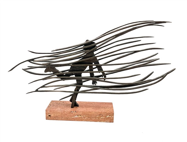Mario Ceroli "La forza di sognare" multiplo in bronzo su base in marmo h scultu