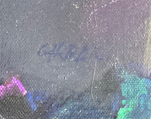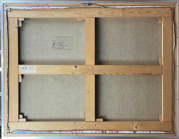 firmato in basso a destra; timbro dell'artista al retro con i dati dell'opera. In cornice (difetti)