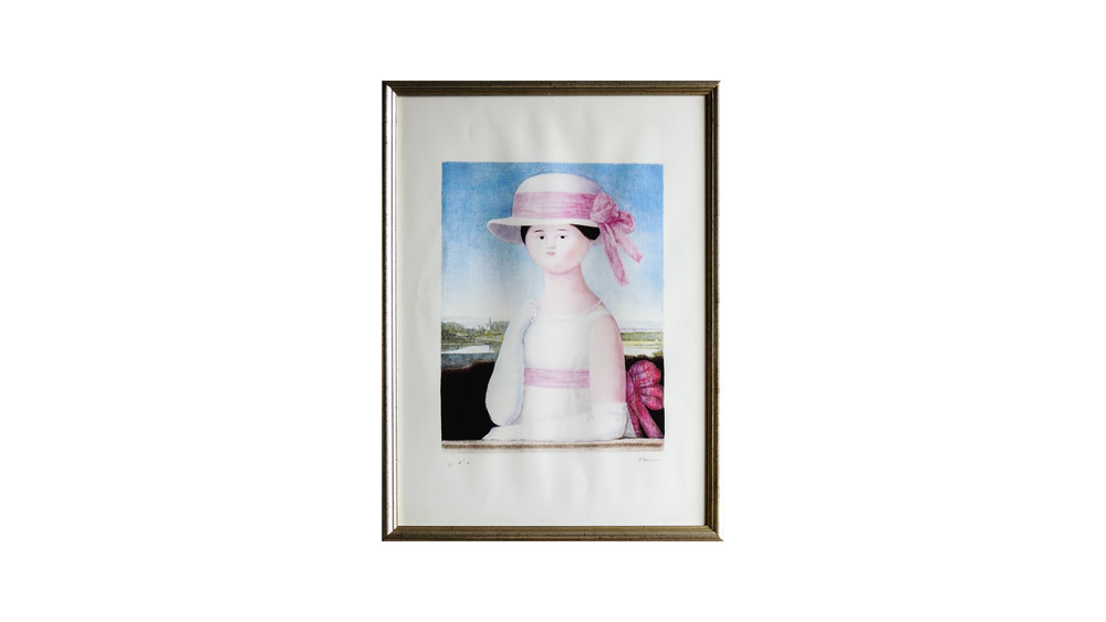 ANTONIO BUENO (1918-1984) Ritratto di dama con cappello litografia, prova d'autore, firmata, in cornice cm 46,5x35 Female Portrait of a Lady with Hat, lithograph
