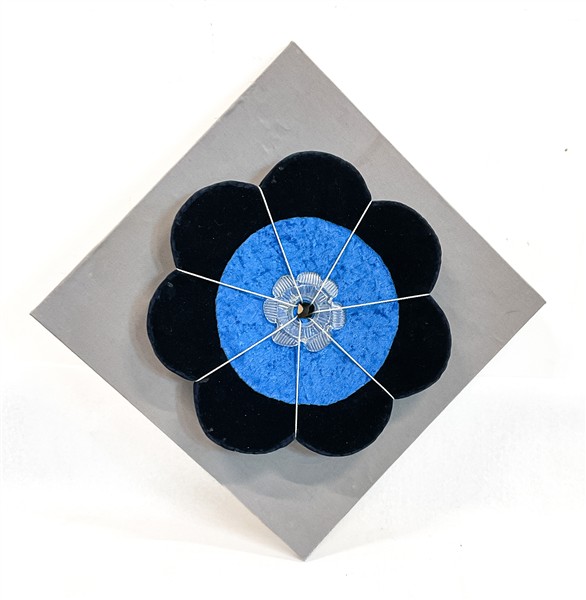 tecnica mista su tela applicata su compensato (velluto, vetro, corde)