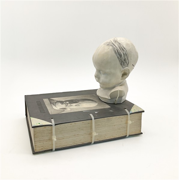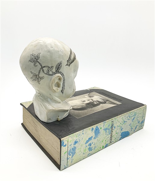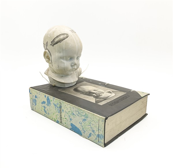 José D'Apice "Designyourself" 2012 tecnica mista su calco in gesso e libro cm 25