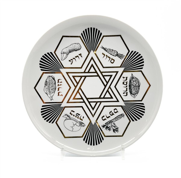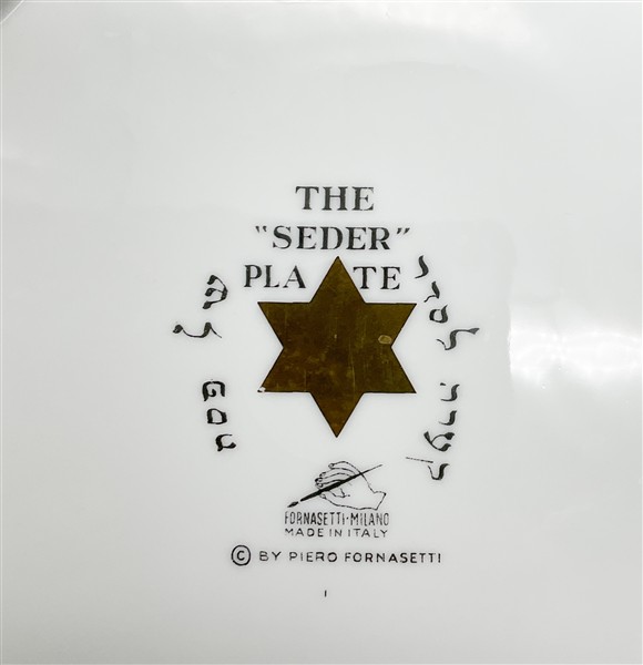 Lotto 1955 | Fornasetti "The seder plate" Piatto in porcellana bianca serigrafata in nero e o