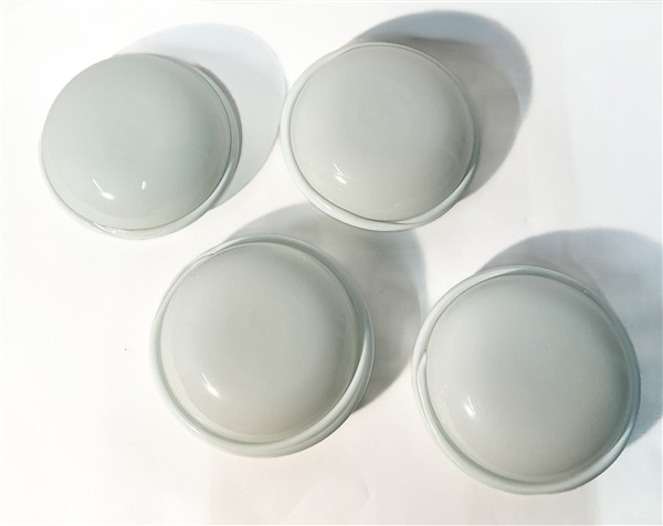 Quattro lampade da parete modello "812/01". Vetro lattimo con bordo lattimo. In scatole originali.