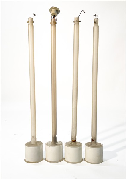 Quattro lampade a sospensione in vetro modello "Canna". Esecuzione Fontana Arte, Milano, 1981. (h cm 110) (difetti)