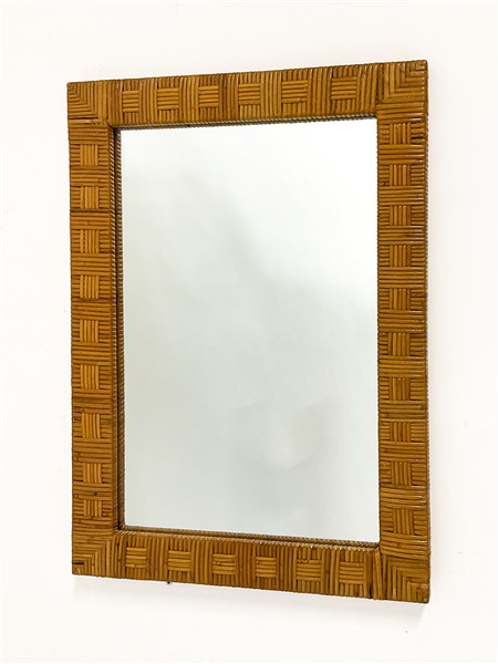 Specchiera con cornice in giunco. Italia, anni '70. (cm 50x70)