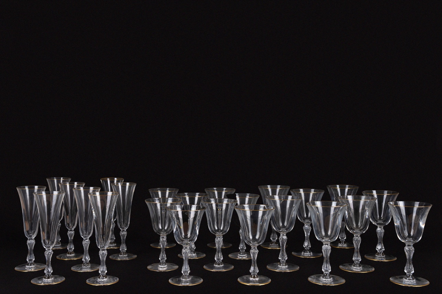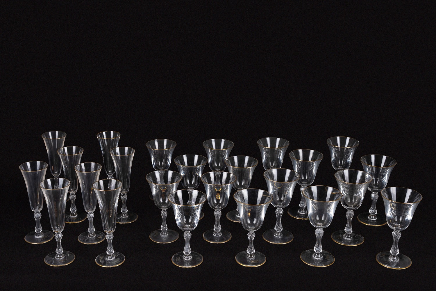 profilati in orocomposto da: 8 calici da acqua, 8 calici da vino e 8 flute