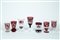 Lotto di sette bicchieri in cristallo trasparente e bordeaux decorato alla mola con decori differenti a soggetto floreale e naturalistico, Northern European manufacturing, late 19th century