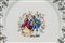 Set da dessert in porcellana bianca con bordo dorato e scena galante, Manifattura tedesca.