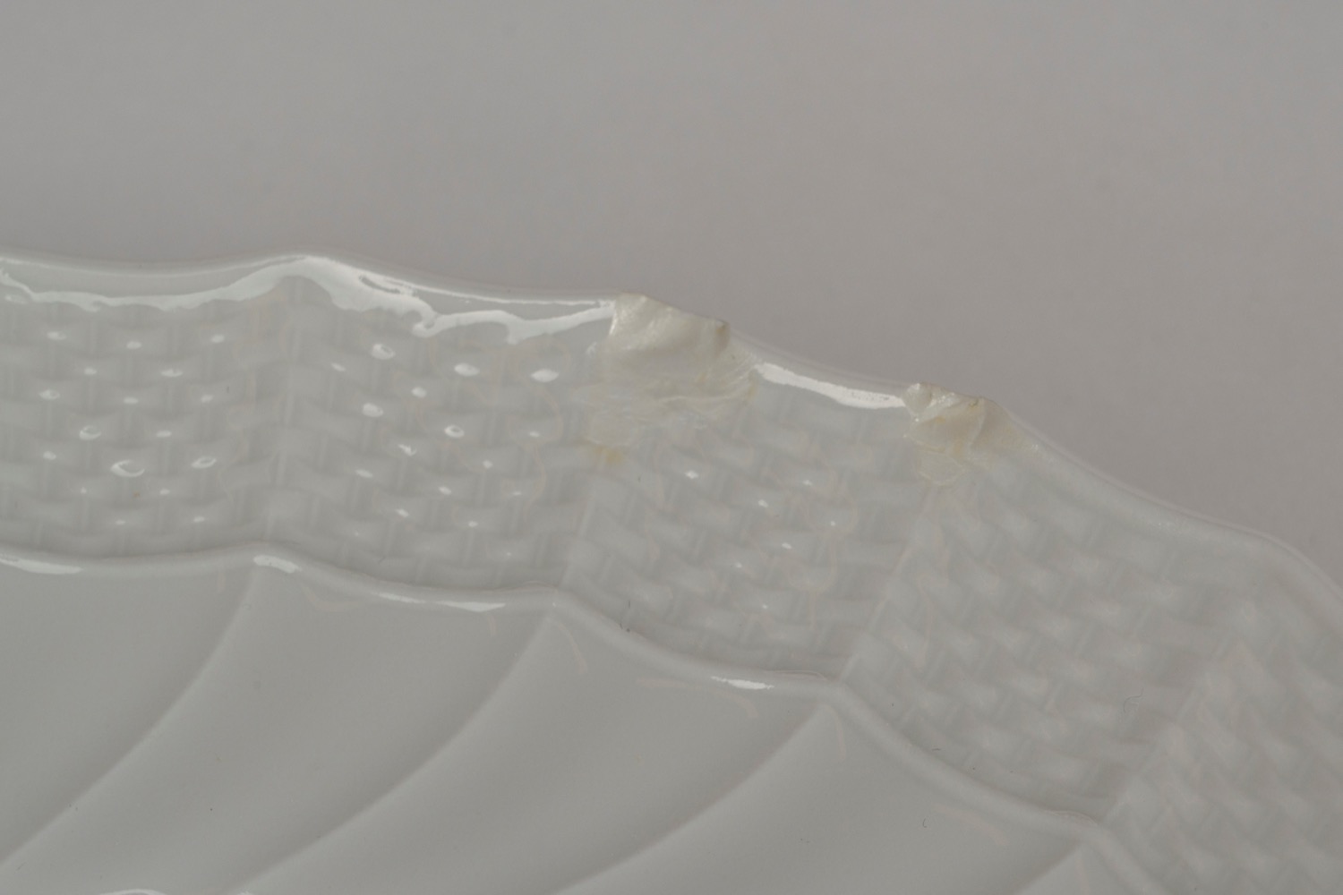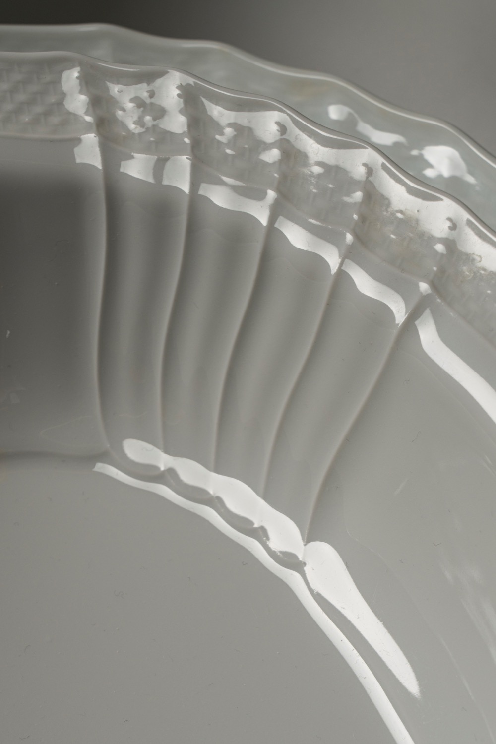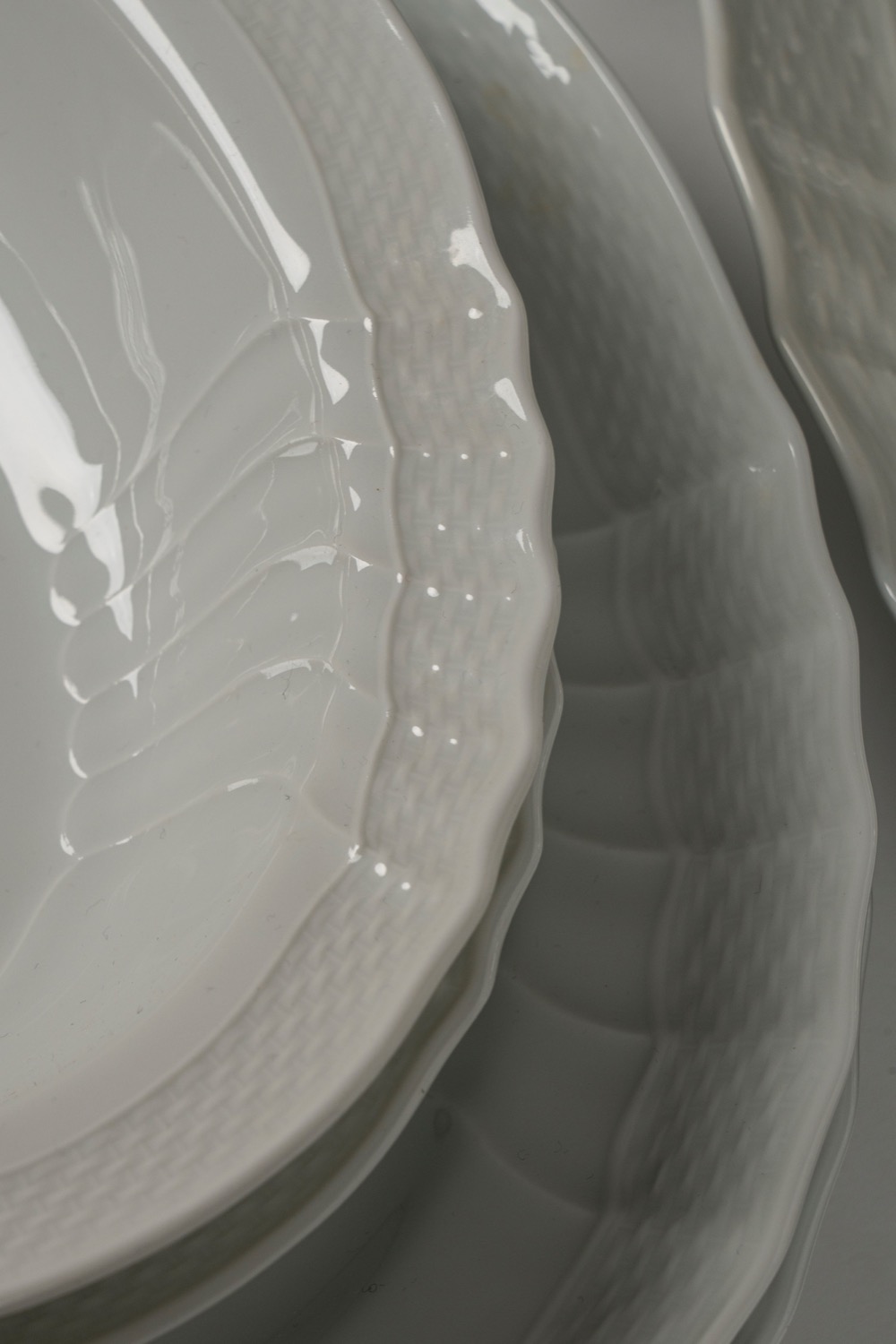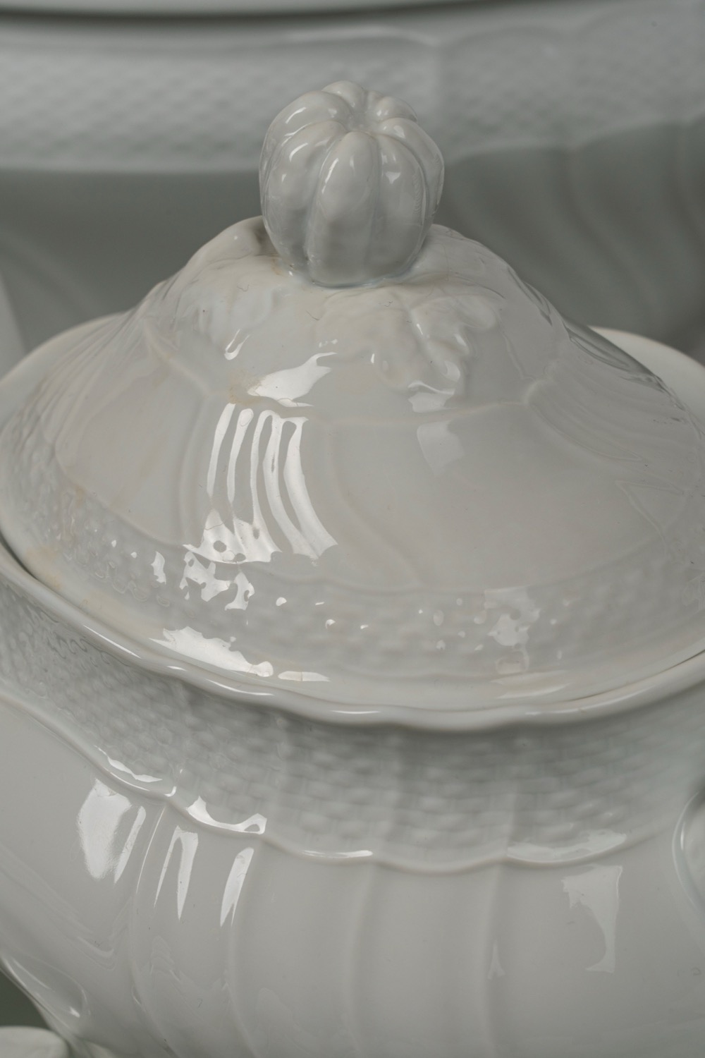Servizio da tavola "Vecchio Ginori" in porcellana bianca con bordo costolato e a finto vimini. Richard Ginori, secolo XX