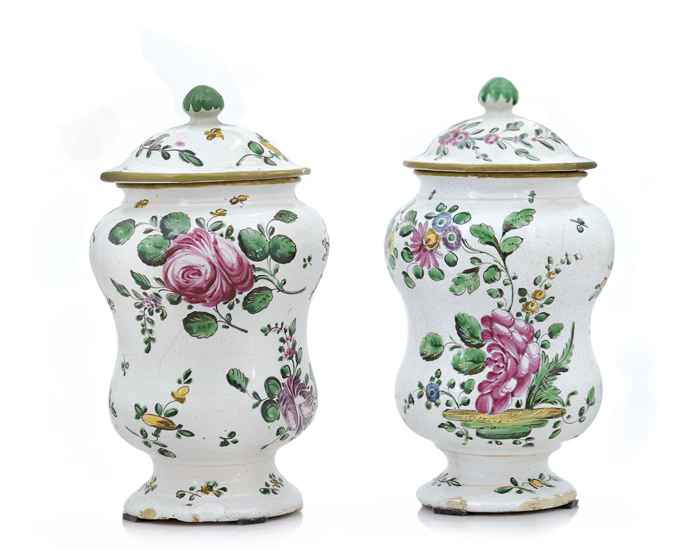 Lotto 58 | PESARO COPPIA DI ALBARELLI CON COPERCHIO IN MAIOLICA, PESARO, CASALI E...