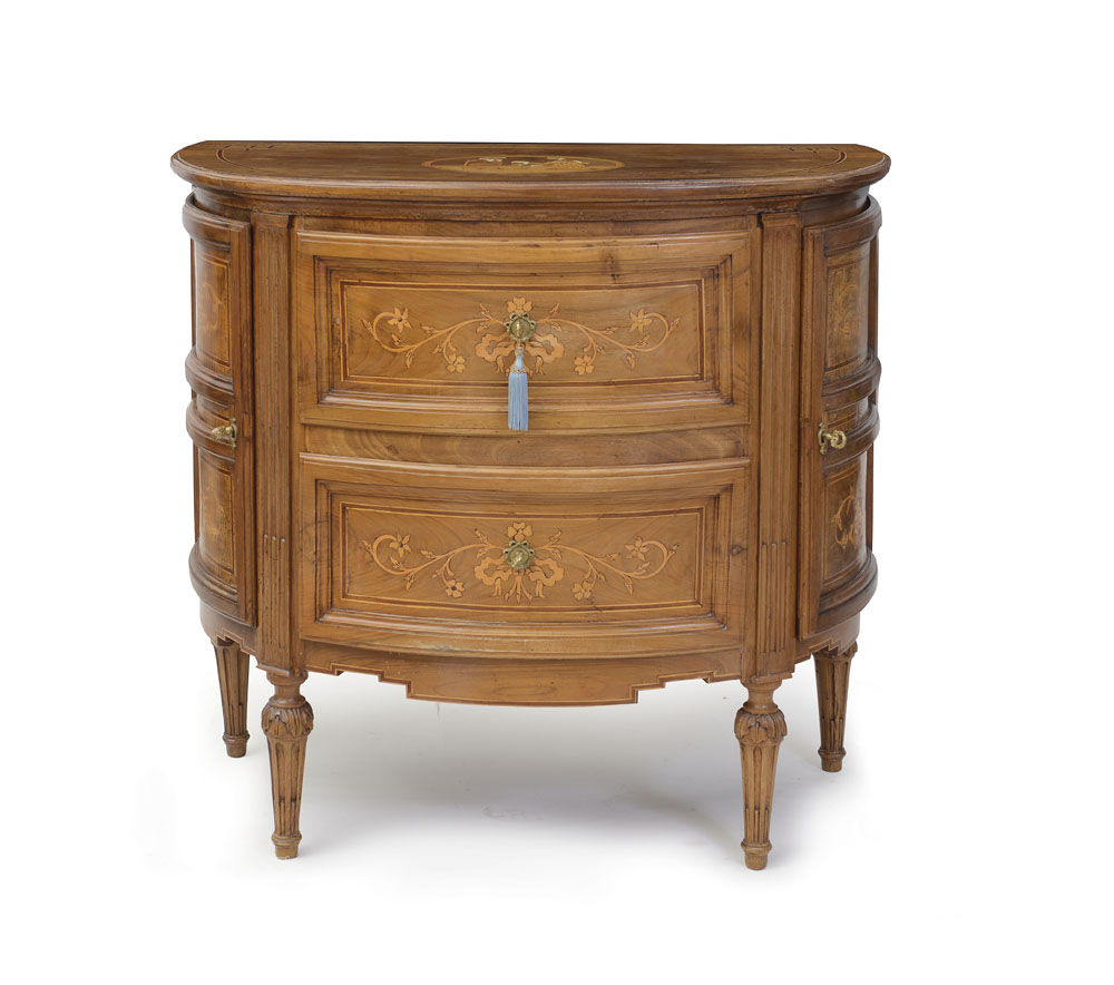 MOBILE DEL XVIII SECOLO CASSETTONE IN NOCE A MEZZALUNA INTARSIATO, PIEMONTE,...