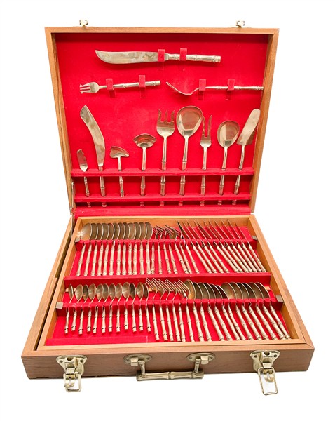 Servizio di posate da dodici in ottone con presa in forma di bambù completo di