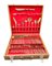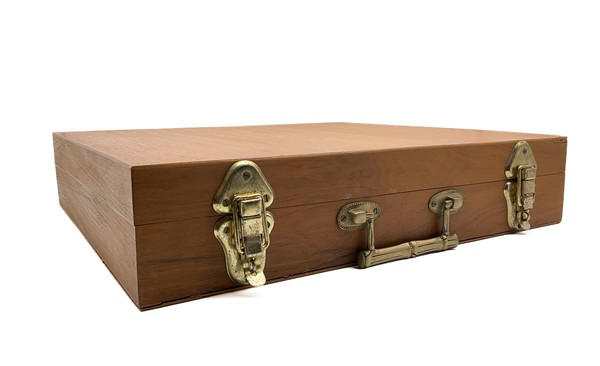 Servizio di posate da dodici in ottone con presa in forma di bambù completo di posate a servire, entro cofanetto in legno. Thailandia, secolo XX (cofanetto cm 48x43) (difetti)