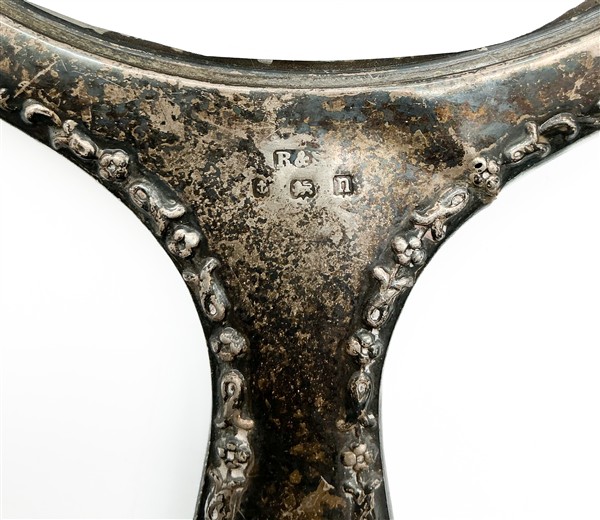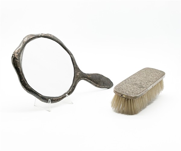 Lotto composto da uno specchio e una spazzola da toilette in argento (difetti)
