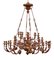 Grande lampadario a quaranta luci su tre file in legno e metallo laccato e dora