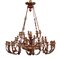 Grande lampadario a quaranta luci su tre file in legno e metallo laccato e dora