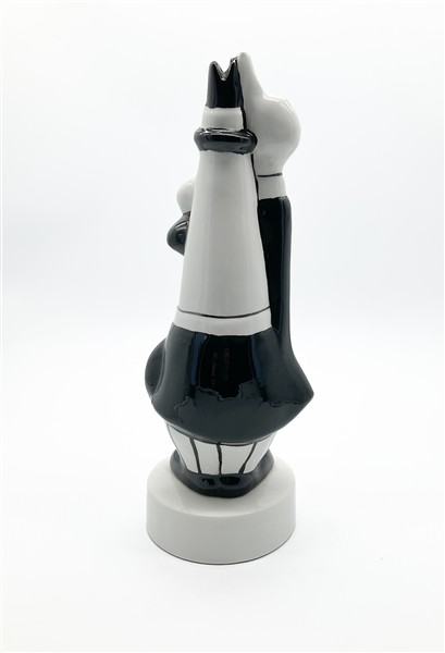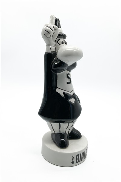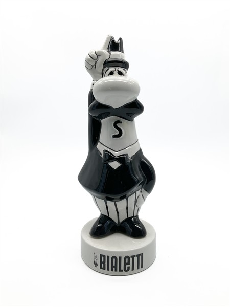 Gadget pubblicitario raffigurante l'iconico "Omino coi baffi' testimonial della ditta Bialetti da un idea di Paul Campani e Max Massimino Garnier. Ceramica a colaggio marcata sotto la base S.G. (h cm 32) (lievi difetti)