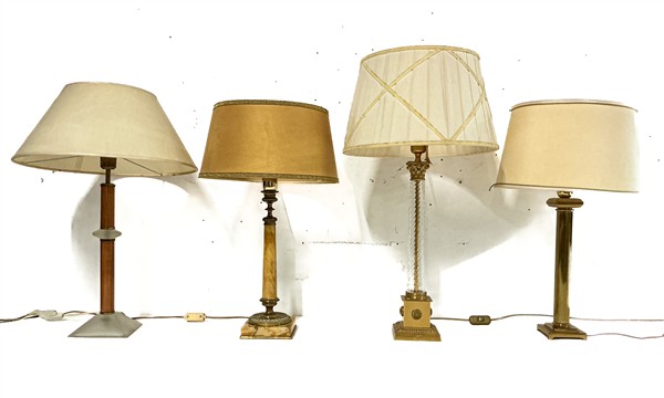 Lotto composto da quattro lampade d'appoggio con paralumi di cui due con fusto