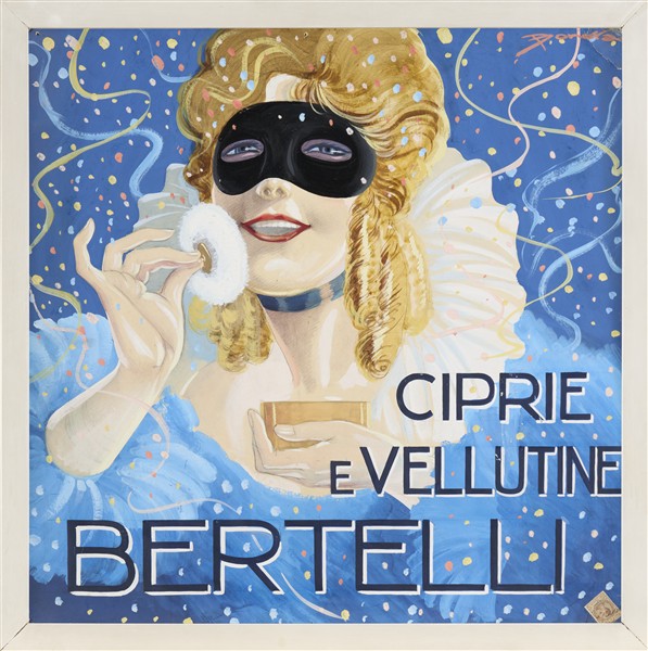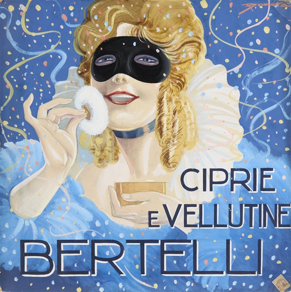 C. Bonora "Ciprie e Vellutine Bertelli" tecnica mista su carta (cm 60x60) firma