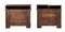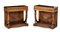 Coppia di mensole da parete in legni vari con fascia unghiata, montanti ad anim