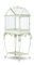 Vetrinetta in metallo smaltato bianco e vetro, gambe mosse riunite da pianetto,